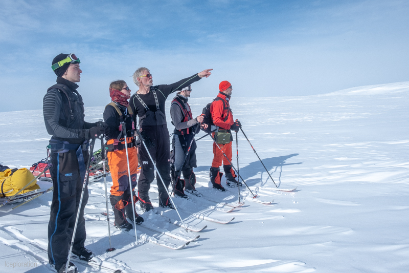 Abseits von Loipen und gespurten Wegen ist meistens weicherer Schnee anzutreffen, der das Fahren mit normalen Langlauf-Ski erschwert, da aufgrund der geringen Fläche die Ski nicht „aufschwimmen“ sondern sich eher in den Schnee eingraben. Breitere, sogenannte Backcountry-Ski, eignen sich daher eher für tieferen und weicheren Schnee wie zum Beispiel im ungespurten Gelände der Hardangervidda in Norwegen. Zumal diese auch meistens Stahlkanten besitzen, um den Ski vor Verschleiß beim Spuren zu schützen. Bei unserer Hardangervidda-Trainingstour kamen Expeditions-Ski von Sporten zum Einsatz, die diese Eigenschaften aufwiesen und sich in Verbindung mit den Pulken bestens bewährt haben. Dazu kommen Expeditionsschuhe von ALFA. Diese zeichnen sich besonders durch ihre wind- und wärmeisolierenden Eigenschaften und ihren bequemen Sitz aus.