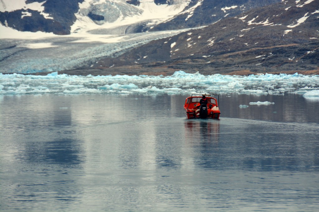 In den letzten Tagen haben wir unser Lager im Johan Petersen Fjord aufgeschlagen und das Material zum Schneefeld transportiert. Dabei mussten etliche Höhenmeter überwunden werden weshalb wir die rund 90 Kilo Ausrüstung pro Person in mehreren Etappen befördert haben. Bei bisher gutem Wetter sind wir auch schon einen Polarfuchs und Schneehühner beobachten können.