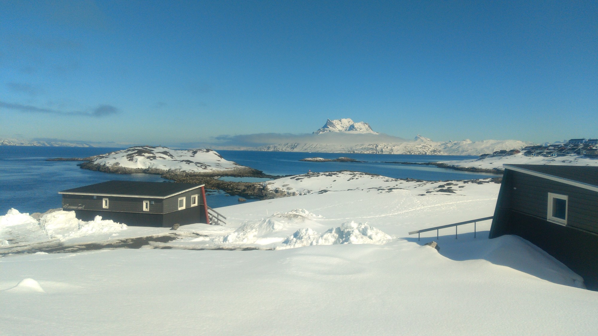 Gemütlich im Bett sitzend verfassen wir heute den heutigen Blogeintrag. Nach dem vierstündigen Flug von Kopenhagen nach Kangerlussuaq und dem einstündigen Anschlussflug nach Nuuk haben wir unsere gemütliche Unterkunft „Inuk Hostels“ bezogen. Von hier aus haben wir einen tollen Blick auf die Schneeberge und den weitläufigen Fjord. Wir sind uns sicher, dass wir hier die nächsten acht Tage gut aushalten können. In dieser Zeit sind noch einige organisatorische Dinge zu klären und am Dienstag nochmal ein Coronatest hinter uns zu bringen. Nuuk ist die Hauptstadt von Grönland, hat etwa so viele Einwohner wie Schwabmünchen und hat eigene laufende Skilifte direkt am Flughafen. Es liegt noch recht viel Schnee mit entspannten 0°C. Schöne Grüße an das frühlingshafte Deutschland