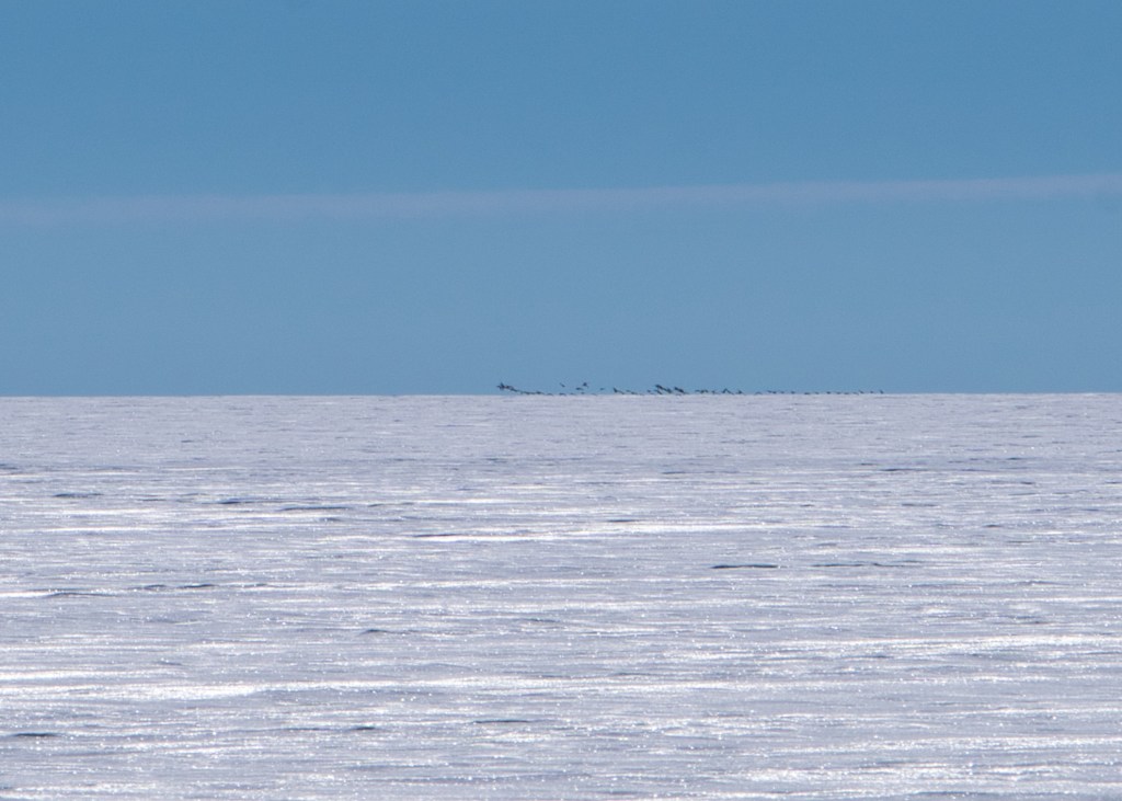 Heute haben wir den zweiten Tag mit Messungen bei den Stober-Punkten verbracht. In Begleitung von David Severin haben wir einige Fußabdrücke im Schnee hinterlassen. Wir schauen, dass wir soviel wie möglich essen, damit wir so wenig wie möglich tragen müssen, wenns dann über Festland ohne Schnee geht. Mussten die Platte für die Antenne reparieren, die wegen des welligen Bodens durch die Erschütterung kaputt gegangen war. Es schneit leicht mit White Out, manchmal kommt die Sonne durch. Ca. 0 Grad, ohne Wind. Es ist sehr warm.