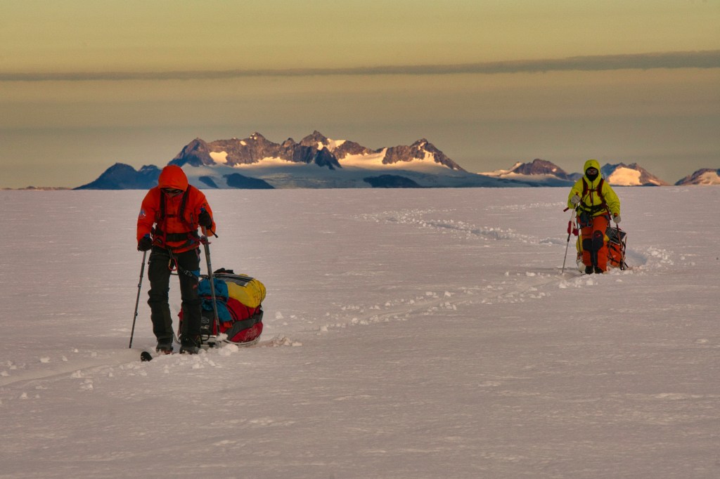 Morgen früh werden wir mal schauen wie das Wetter aussieht und entscheiden, ob wir etwas später starten, um den Sturm abzuwarten, oder bereits am Morgen beginnen. Wir haben ein paar kleine Wehwehchen, Blasen, Achillessehnenschmerzen, einige Magenprobleme und einige Sonnenreaktionen. Es passt also gut, es morgen etwas langsamer angehen zu lassen! Gute Nacht vom Eis!