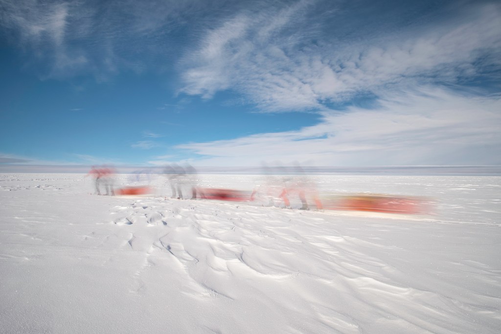 Heute hat uns eine Hitzewelle erwischt – wir haben plus 3 Grad im Schatten gemessen. Unsere Pause haben wir in Unterwäsche verbracht, weil wir so überhitzt waren. Das bedeutete heute auch sehr klebrigen, schweren Schnee und harte Arbeit. Es ist so interessant, das Zusammenspiel der Elemente hier draußen zu beobachten und so direkt davon betroffen zu sein.